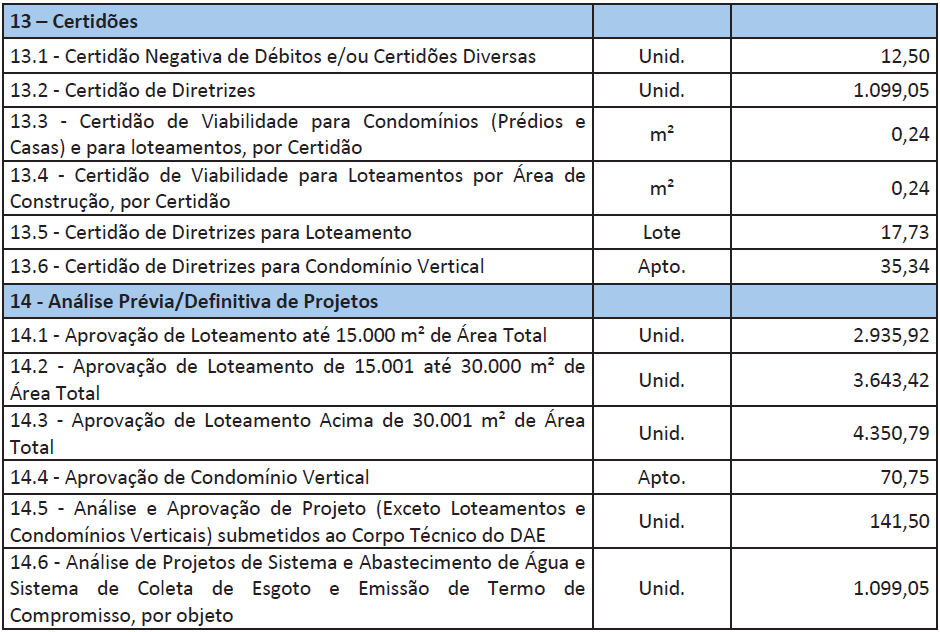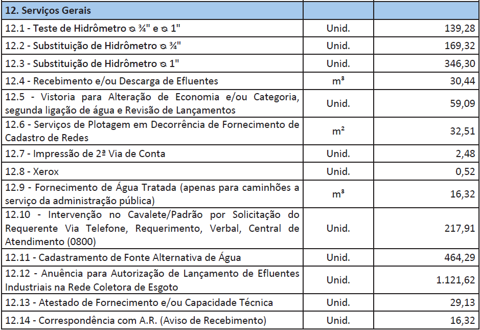 Art. 4º – Fixar os novos valores dos Preços Públicos dos Demais Serviços praticados pelo DAE Americana, conforme apresentado na Tabela 1, do Anexo II desta Resolução.