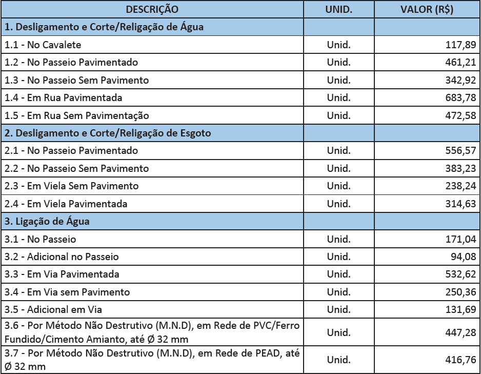 3 – Valor a ser pago por cada m3 consumido. O cálculo desse valor considera a categoria do imóvel e número de economias.
