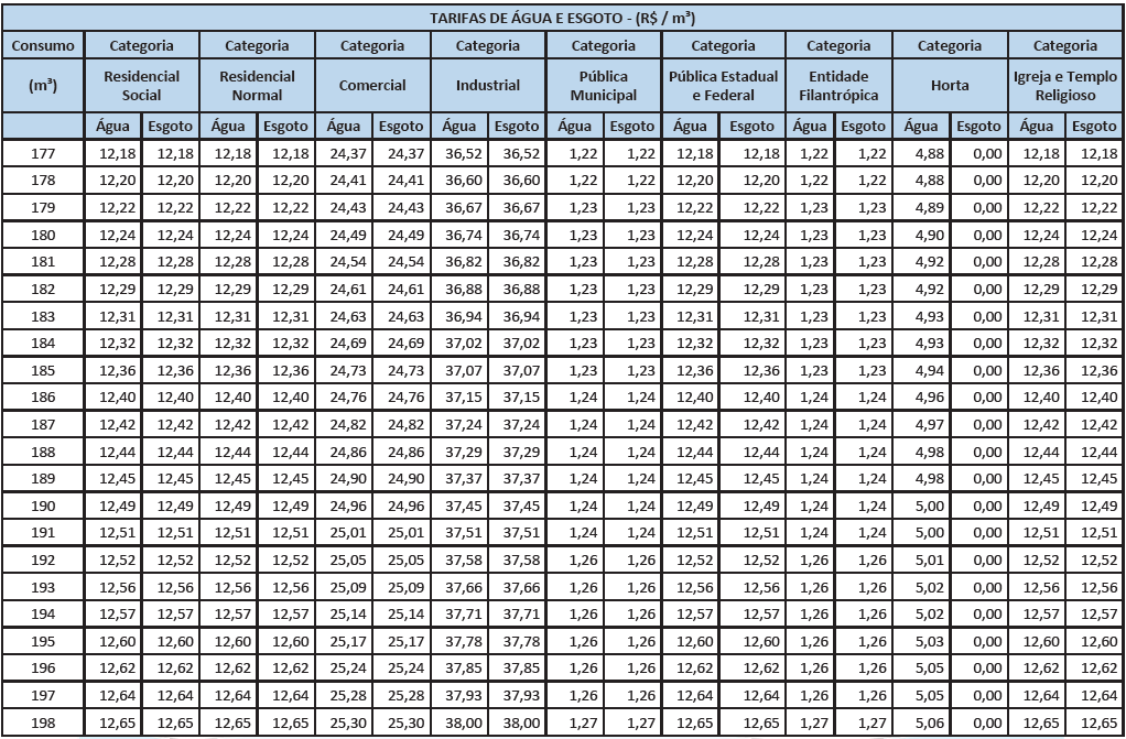 18 – Faixa mínima de cobrança. Varia com a categoria e economias do imóvel.